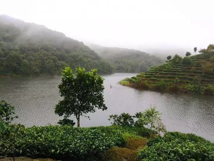 黃龍山左側(cè)的曼歇壩水庫,距離觀景臺不到一公里,這里有山、有水、有茶、還有人家,這是普洱最美的茶山,在薄霧中,湖中劃著木排的打魚人,一早去收獲晚上放下的魚鉤,不告訴你,這風景你還以為是在瀘沽湖呢?