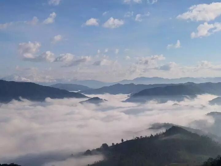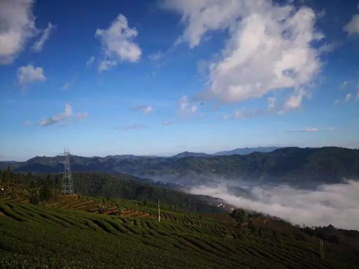 大黑山位于倚象鎮(zhèn),距離主城區(qū)14公里,沿雷達站小路而上一公里左右,車停在茶廠,從茶農(nóng)屋前而下,走進茶園,云海就呈現(xiàn)在眼前,這里沒有城市的喧囂,很寧靜,有山野之美,云海在腳下升騰,身后不時傳來幾聲雞叫聲。