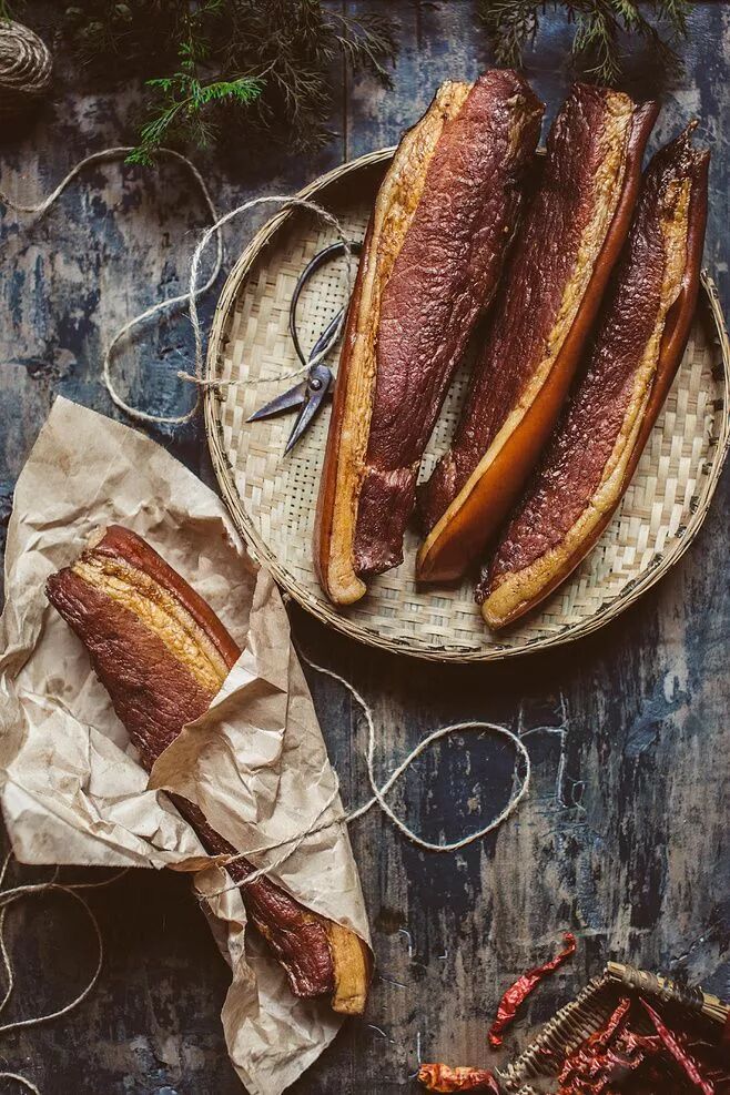 煙熏臘肉 |?民間有:“冬臘風腌,蓄以御冬”的習俗。小雪后氣溫急劇下降,天氣變得干燥,是加工臘肉的好時候。小雪節(jié)氣后,一些農(nóng)家開始動手做香腸、臘肉,拍豬肉,抹鹽加醬,做成一串串臘腸臘肉??粗鼈冊陉柟庀麻W著油光,仿佛都可以聞見嚴冬里那碗臘味飯的甜香。等到春節(jié)時正好享受美食。