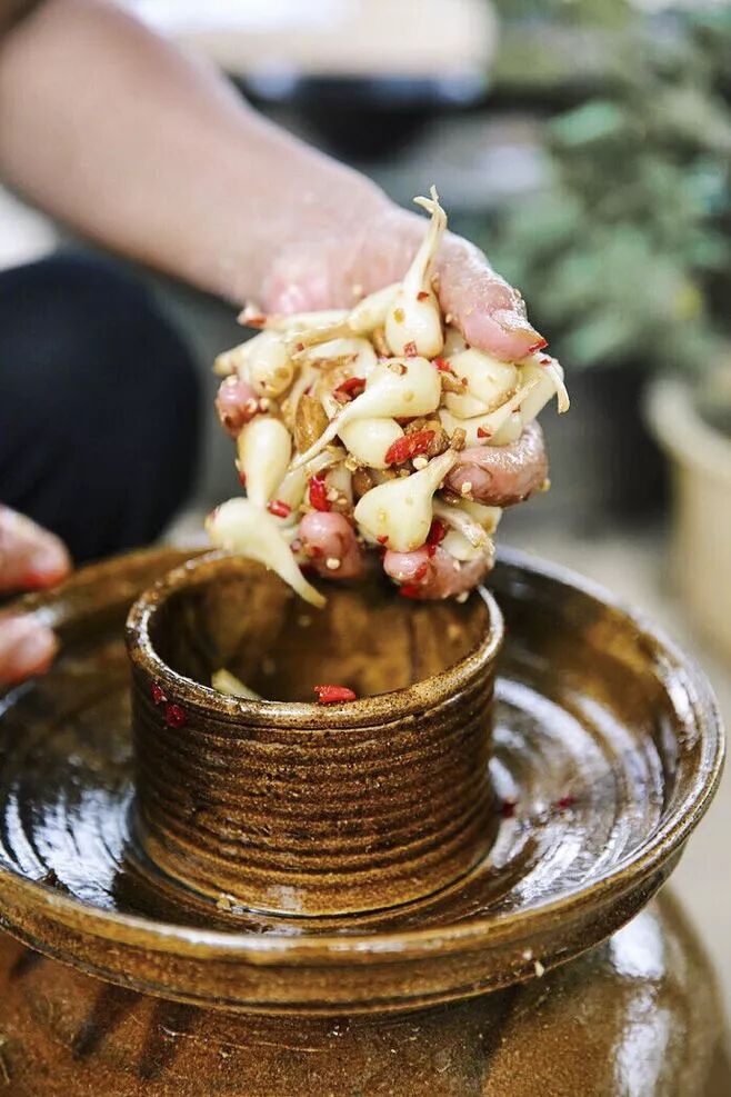 腌咸菜 |?南京人逢小雪前后必腌菜,冬季蔬菜供應緊張時,腌菜就能派上用場,一般能吃到來年春天。每個家庭都少不了幾個壇壇罐罐,用途很簡單,就是為了腌咸菜,比如咸黃瓜、蒜茄子和糖蒜,吃不完的腌菜還可以在天好時,拿出來曬干。