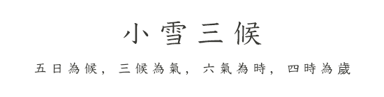 《群芳譜》言:“小雪氣寒而將雪矣,地寒未甚而雪未大也。”