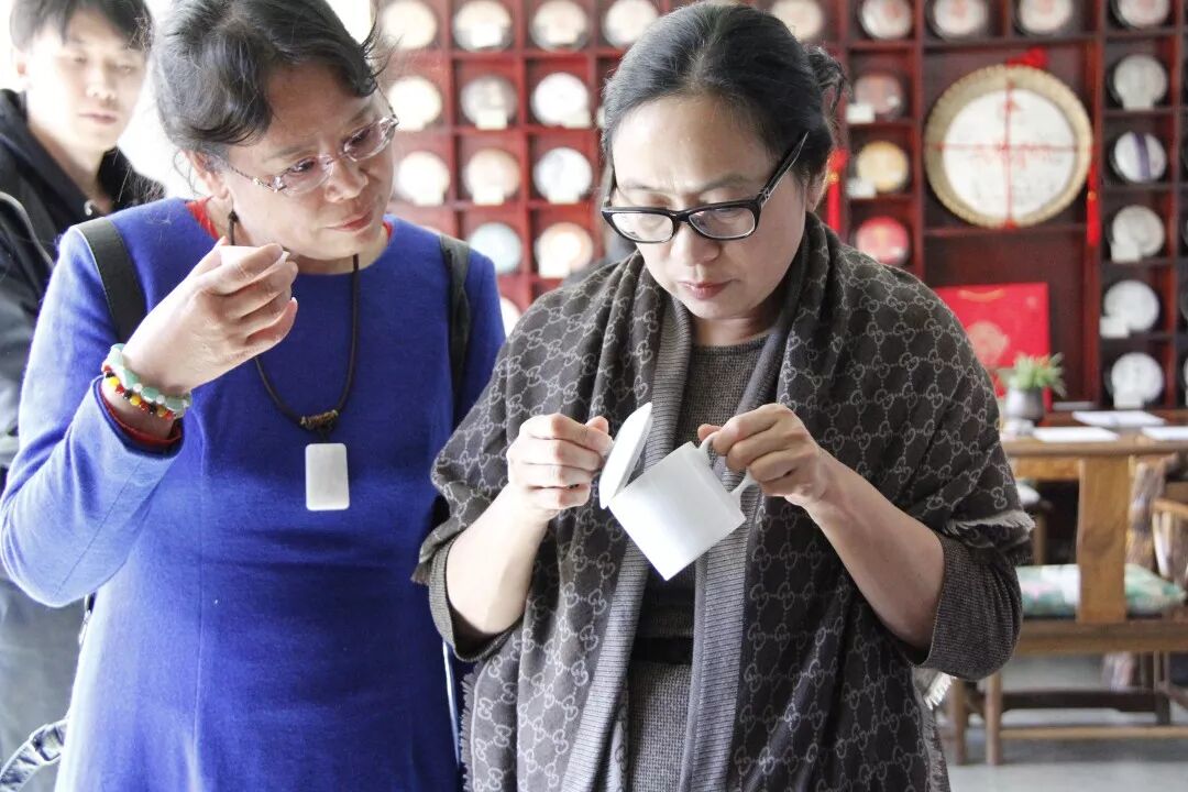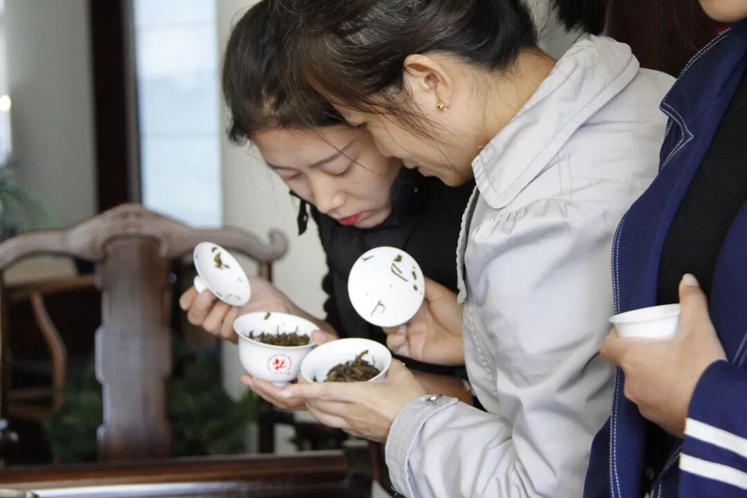 在大家猜測之后,主考官公布答案,樣1是六大茶山古茶莊園系列的15年陳,倉儲地在昆明;樣2則是一款儲存在山東青島的其他品牌2005年易武老茶。