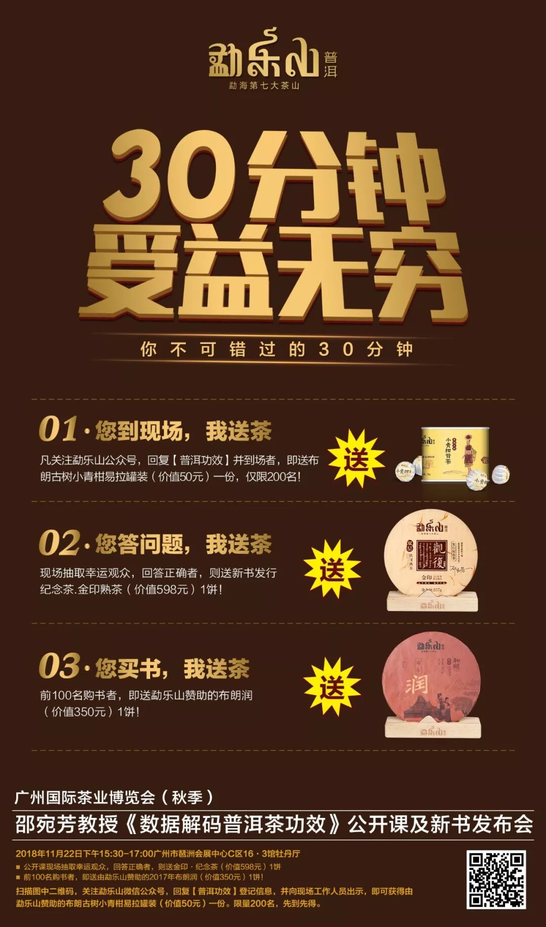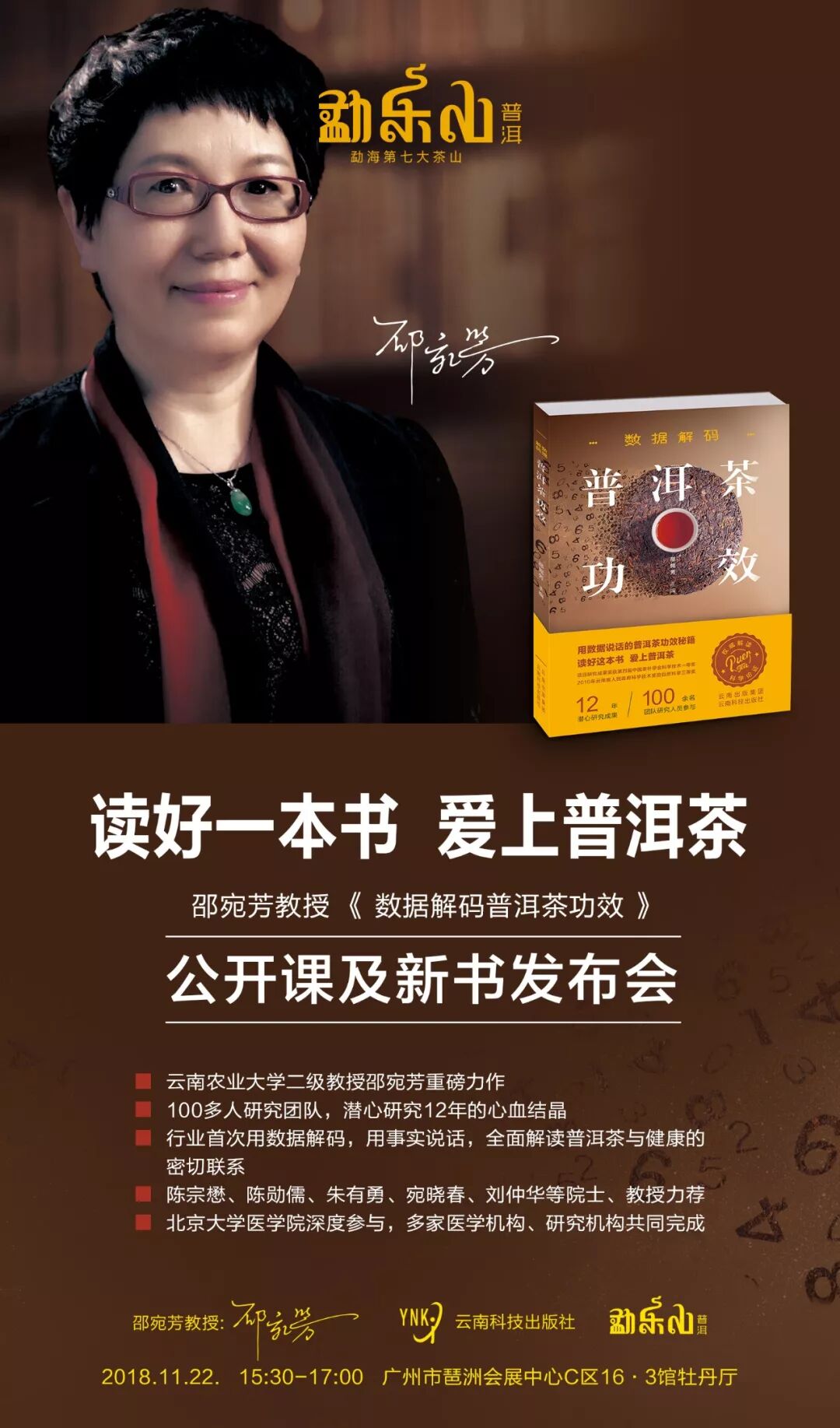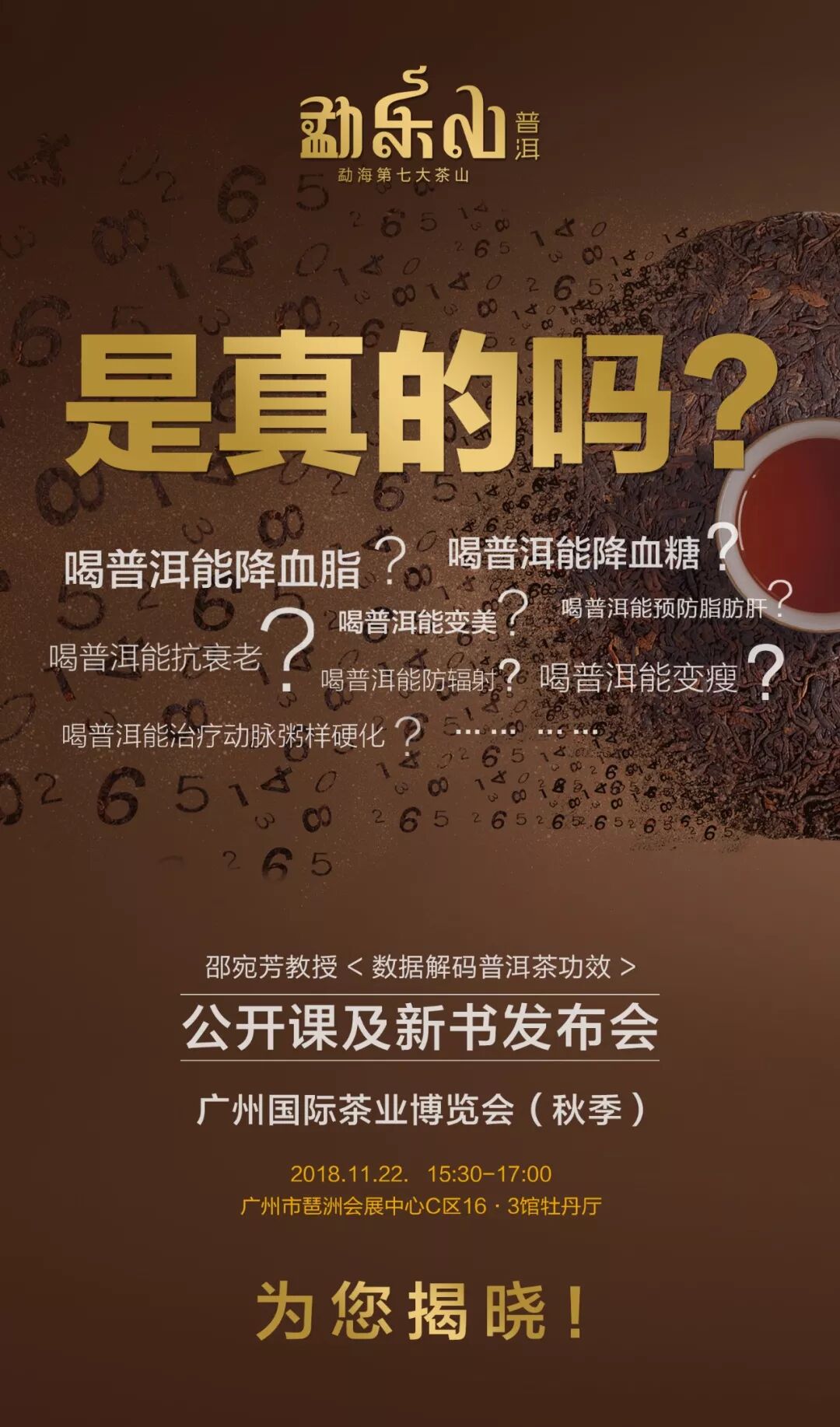 11月22日下午15:30,《數(shù)據(jù)解碼普洱茶功效》一書的主編邵宛芳教授將親臨廣州國際茶業(yè)博覽會(秋季)C區(qū)16·3館牡丹廳,將12年苦心研究的精華,濃縮在30分鐘的公開課之中。愛普洱的您,不能錯(cuò)過。想賣好普洱茶的您,更不可缺席。