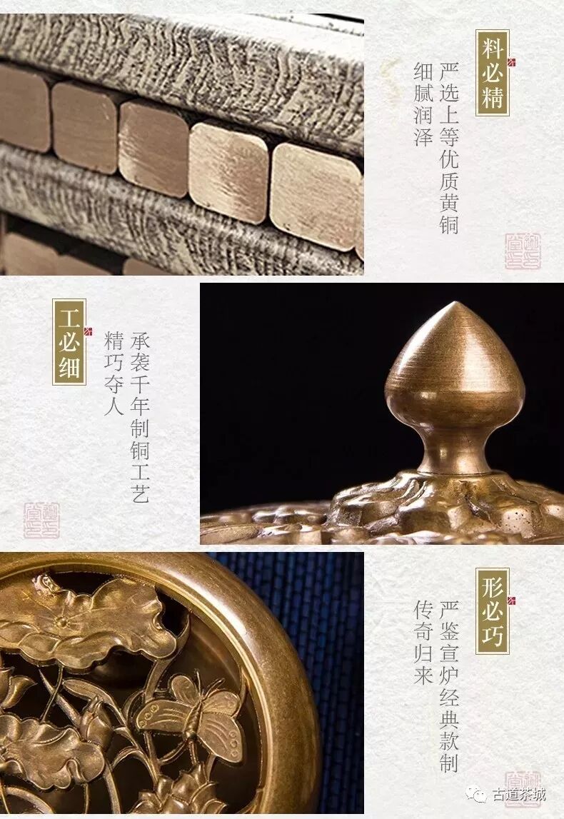 五星推薦,杯小茶自用茶席搭配的是,黃銅復(fù)古宣德銅爐;喜歡低調(diào)古樸的,可以選擇紫銅仿古宣德銅爐;獨(dú)愛菊,希望修心修性的,可以選擇金菊秋韻黃銅復(fù)古宣德銅爐;喜歡低調(diào)奢華有內(nèi)涵,請選擇紫銅復(fù)古手染如意爐。