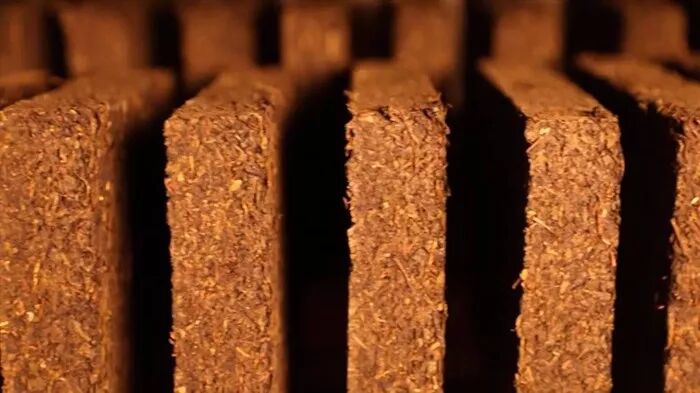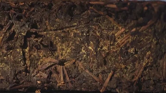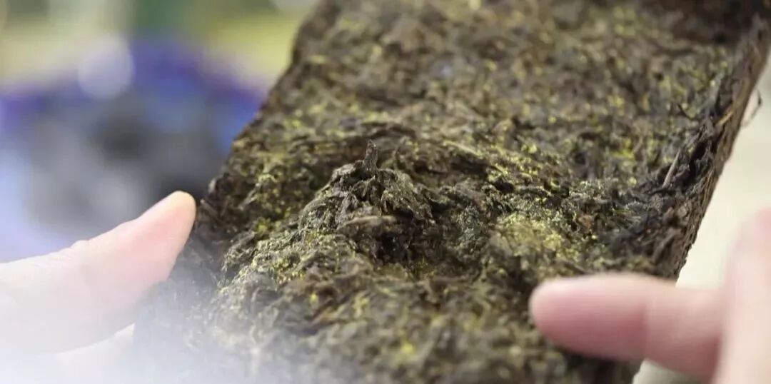 剛出烘房的新茯茶,磚身內(nèi)有大量的金黃色顆粒。人們形象稱(chēng)之為“金花”,學(xué)名 “冠突散囊菌”,是在特定溫度濕度條件中,通過(guò)發(fā)花工藝長(zhǎng)成的自然益生菌種。