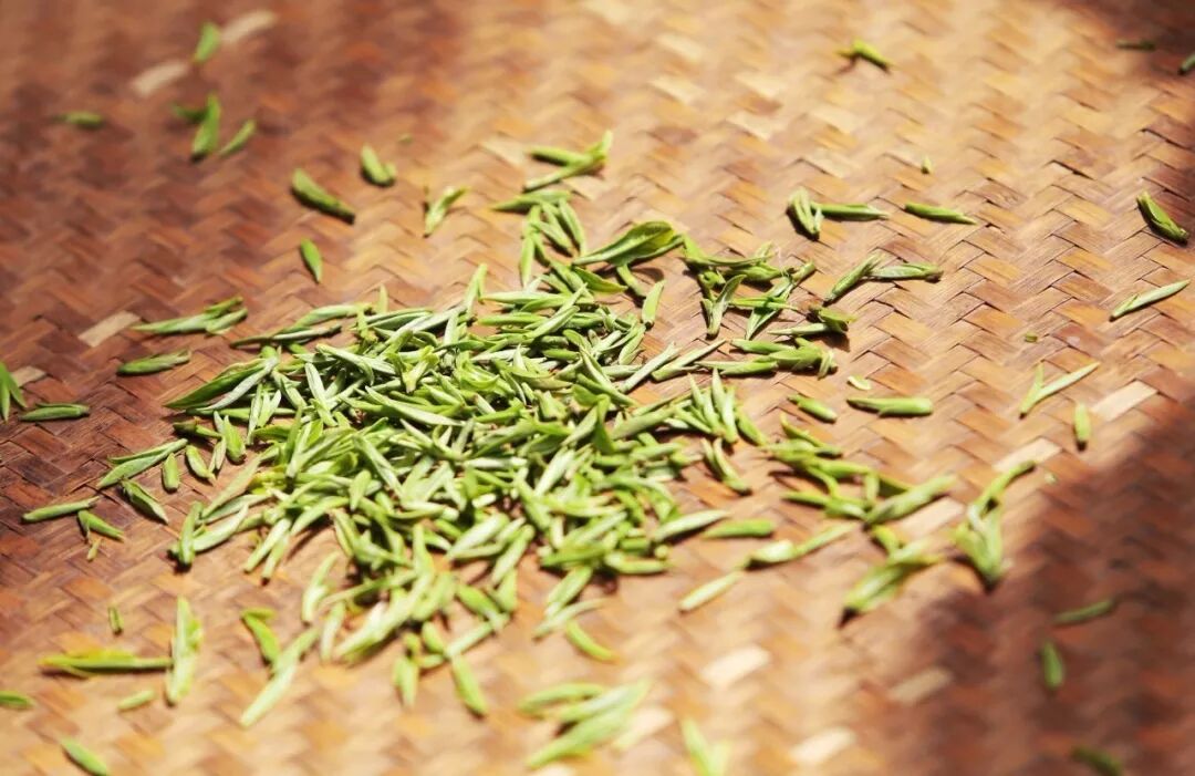 連綿的春雨停歇了,為春茶頭芽的生長注入了鮮活。在陽光的回溫下,茶園慢慢變綠了,每年清明節(jié)前半個月左右,就是采茶工最忙的時候。采茶要有技術,以一芽一葉為標準,用食指、大拇指夾注嫩莖,輕輕一提,將芽葉采下,大小一致,炒出來的茶葉品相越好。