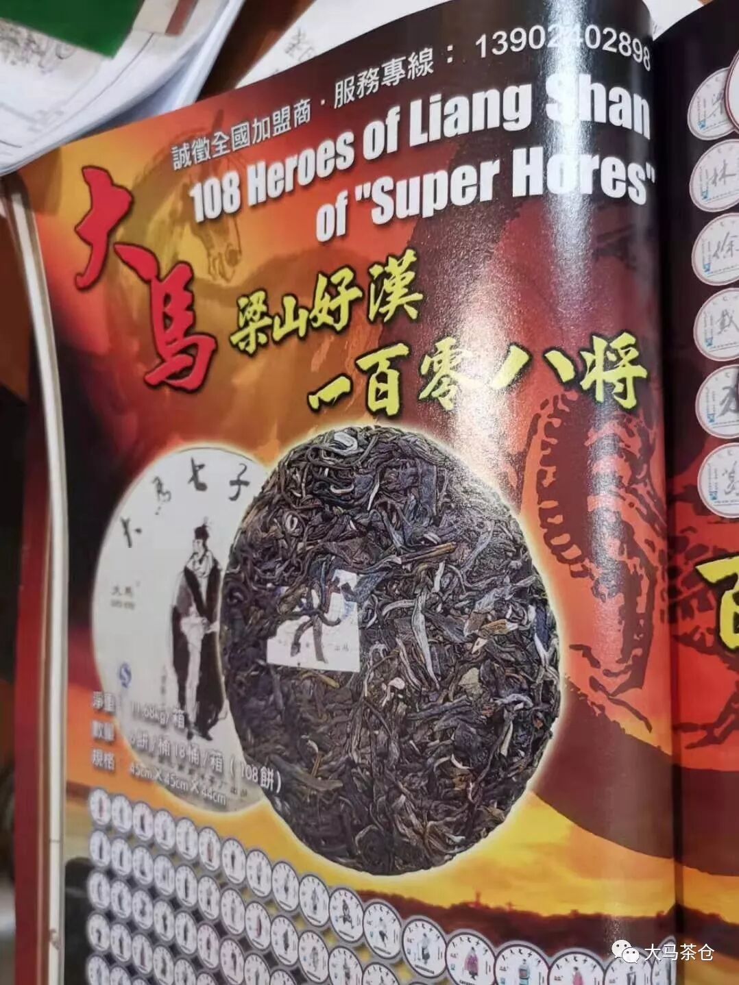 一個(gè)人的收藏體現(xiàn)一個(gè)人的品味,存老茶,與親朋共享,也可以談?wù)摎v史,笑看人生,拿出一百零八將茶餅,就可以調(diào)動(dòng)思維,感受《水滸傳》中梁山好漢的感人故事?!端疂G傳》,中國(guó)四大名著之一,是一部以北宋末年宋江起義為主要故事背景、類型上屬于英雄傳奇的章回體長(zhǎng)篇小說(shuō)。全書(shū)通過(guò)描寫(xiě)梁山好漢反抗欺壓、水泊梁山壯大和投降朝廷以及投降朝廷后鎮(zhèn)壓田虎,王慶,方臘等各路反抗宋朝政府的政治勢(shì)力,最終走向悲慘失敗的宏大故事,藝術(shù)地反映了中國(guó)歷史上宋江起義從發(fā)生、發(fā)展直至失敗的全過(guò)程,深刻揭示了起義的社會(huì)根源,滿腔熱情地歌頌了起義英雄的反抗斗爭(zhēng)和他們的社會(huì)理想,也具體揭示了起義失敗的內(nèi)在歷史原因。 《水滸傳》是中國(guó)歷史上最早用白話文寫(xiě)成的章回小說(shuō)之一,流傳極廣,膾炙人口;同時(shí)也是漢語(yǔ)文學(xué)中具備史詩(shī)特征的作品之一,對(duì)中國(guó)乃至東亞的敘事文學(xué)都有極其深遠(yuǎn)的影響。