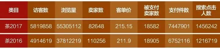 此外,賣家數(shù)及支付賣家數(shù)與2016年相比有所下降,這也說明茶葉賣家的自我凈化仍在持續(xù),而被清理后的賣家店的成交率與去年相比變化仍不大,說明2017年的茶葉賣家已經(jīng)站得更穩(wěn)了。