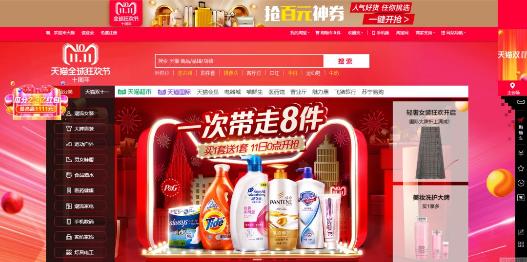2018天貓“雙十一”首頁。(圖片來源:天貓首頁)