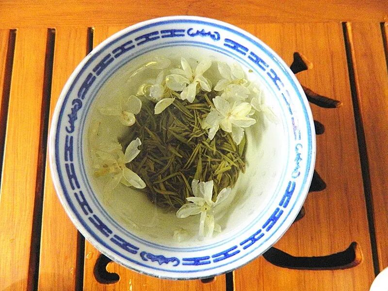 茉莉花茶向來享有“可聞春天的氣味”之美譽(yù),作為綠茶的再加工茶,茉莉花茶的品種并不少,其中,產(chǎn)于四川峨眉山的碧潭飄雪在花茶品類中負(fù)有盛名,可謂一絕。碧潭飄雪采用早春嫩芽為茶坯,挑雪白晶瑩、含苞待放的茉莉花蕾,趕在開放前擇花,使茶葉趁鮮搶香,與未開放的茉莉鮮花混合窨制,花香、茶香交融,并保留干花瓣在茶中。外形緊細(xì)挺秀,白毫顯露,香氣持久,回味甘醇。喝碧潭飄雪,賞著花和杯中的景觀,不失為一種清歡。