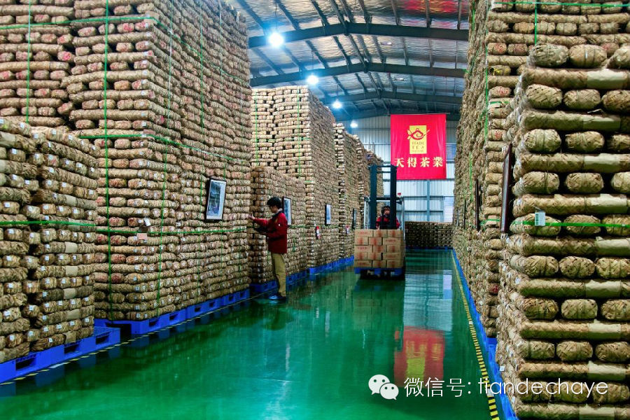 天得茶業(yè)倉庫中堆積如山的黑茶