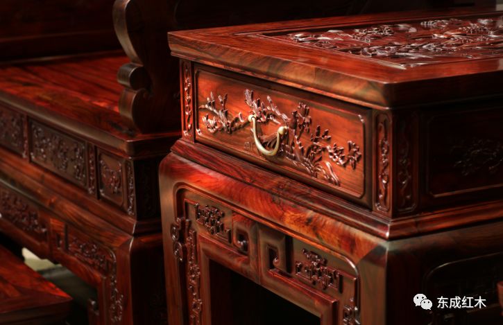 一般來說,真正的紅木家具木紋自然細膩、清晰可見。