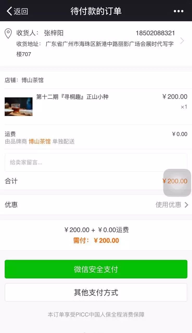 第六步:付款成功后,就靜候我們的茶到手啦!