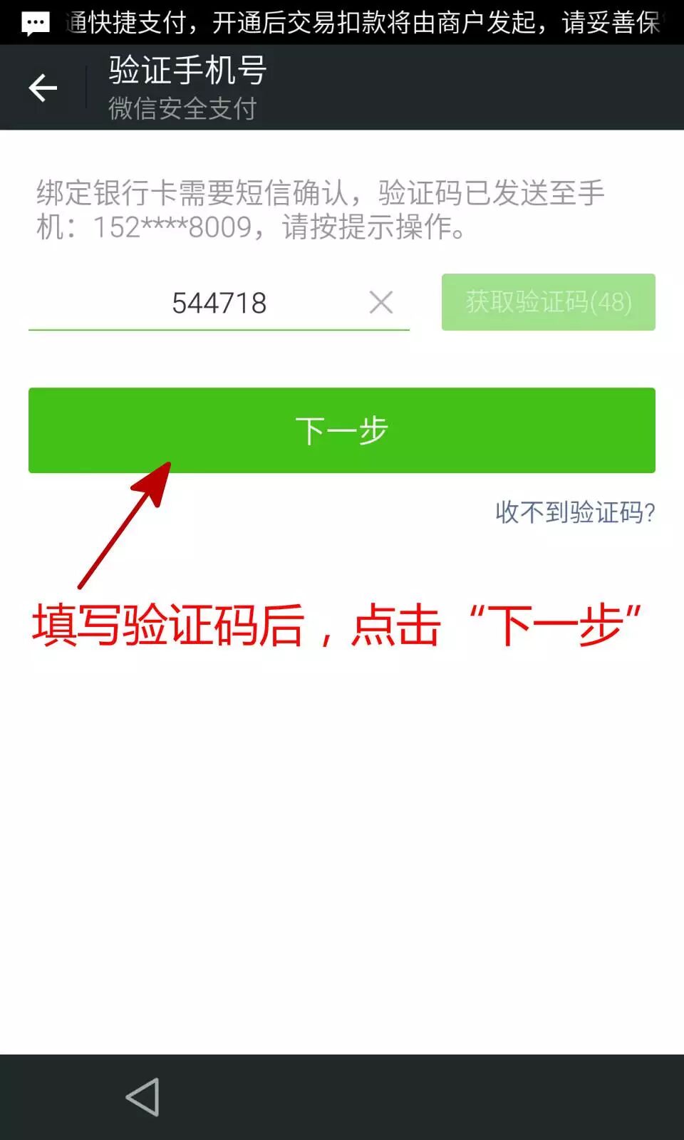 5、驗(yàn)證手機(jī)號(hào),手機(jī)會(huì)收到一條驗(yàn)證短信,將驗(yàn)證號(hào)填入,點(diǎn) 下一步。