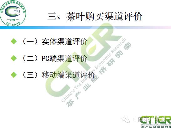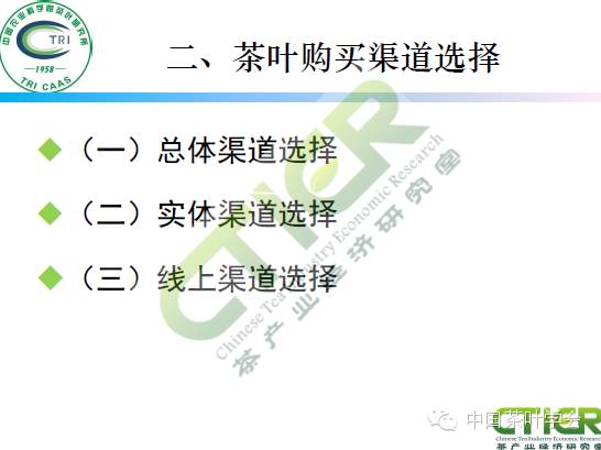 為此,中國茶葉學(xué)會特將中國農(nóng)業(yè)科學(xué)院茶葉研究所茶業(yè)經(jīng)濟(jì)研究中心、國家茶產(chǎn)業(yè)技術(shù)體系產(chǎn)業(yè)經(jīng)濟(jì)研究室在上半年針對消費(fèi)者茶葉購買渠道的研究成果和大家做一個分享。