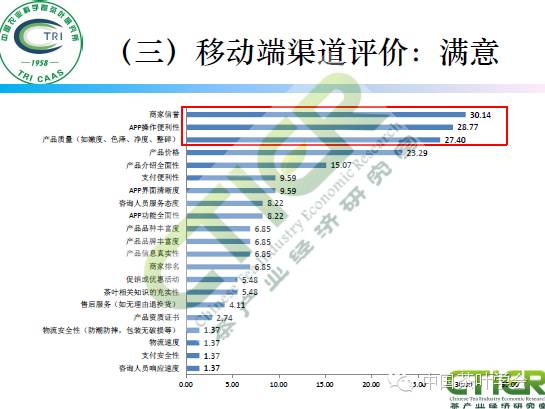 通過調(diào)研數(shù)據(jù)分析可以看出,實(shí)體渠道仍然是主流的茶葉購買渠道,專賣店、商超、小茶店茶行是主要的三大實(shí)體渠道,質(zhì)量背書、可體驗(yàn)性是實(shí)體渠道的最大優(yōu)勢。而購買便利、品種豐富、支付便利等是線上渠道的最大優(yōu)勢。線上消費(fèi)者更看重價格,線下消費(fèi)者更看重產(chǎn)品體驗(yàn)。因此構(gòu)建渠道要基于消費(fèi)者的核心訴求,不可一窩蜂地偏向某種渠道,實(shí)體渠道的主導(dǎo)地位短期內(nèi)不可替代。發(fā)展電商雖然是今后的趨勢,但也不是茶葉銷售的救命稻草。不管哪種渠道都要保證產(chǎn)品的質(zhì)量,在這個前提下降低商品的零售價格,同時要優(yōu)化消費(fèi)者的購買體驗(yàn),簡化購買流程,節(jié)約交易成本。